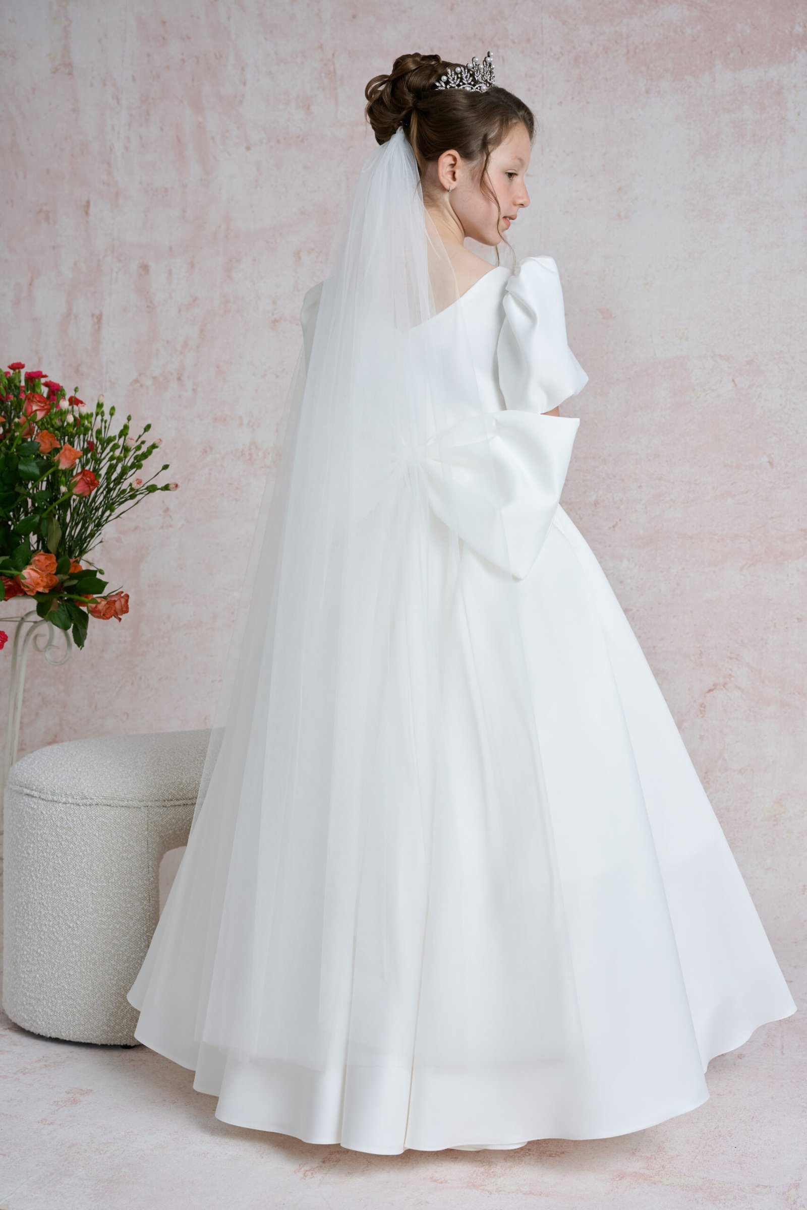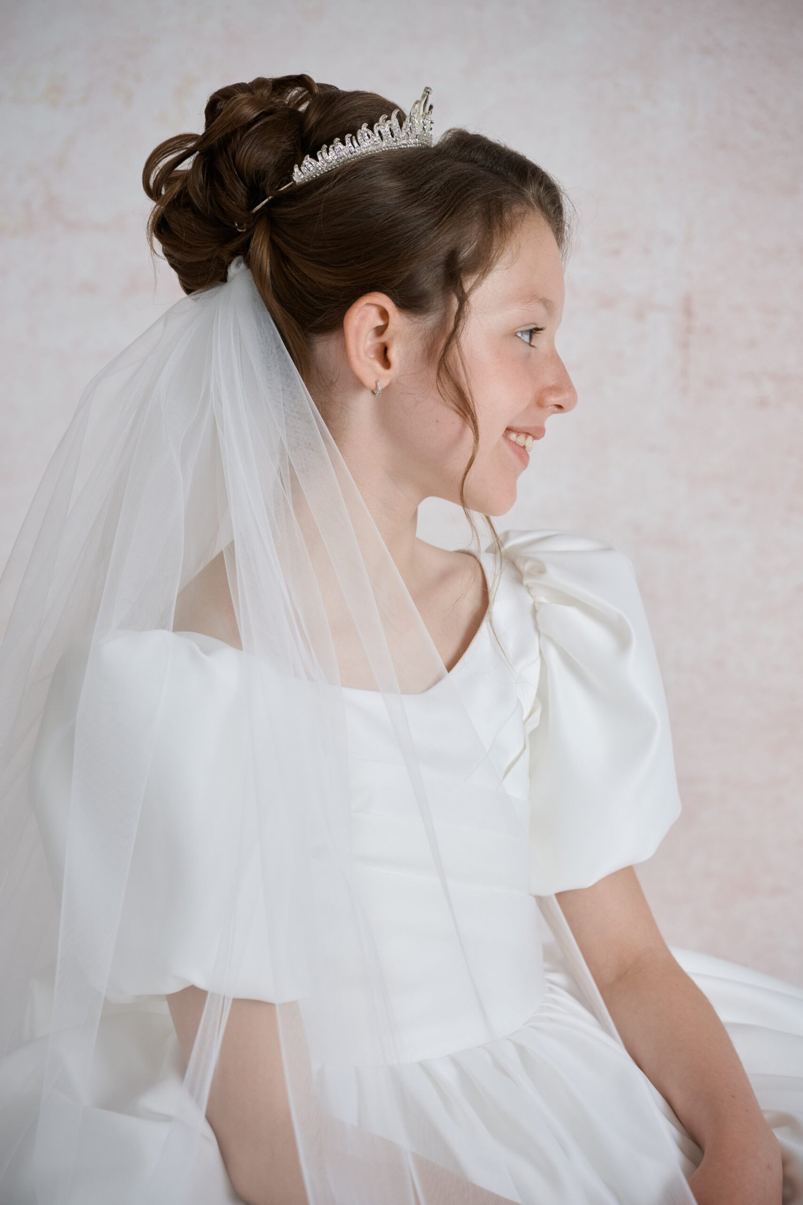 Plain communion veil. Around 130 cm long. With comb.