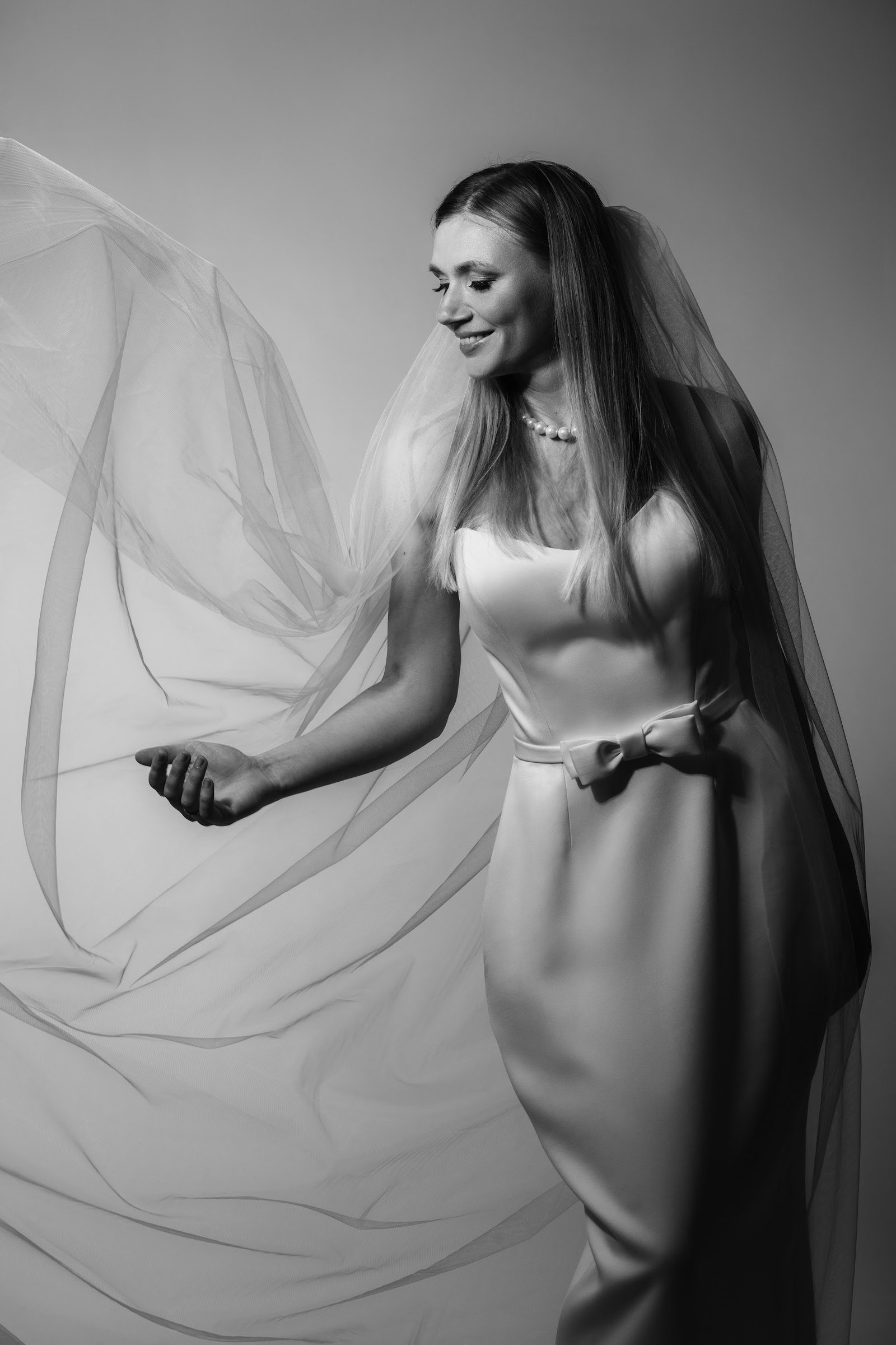 Transform your bridal look with our 3-meter wedding veil, crafted from the finest quality tulle with a luxurious silk touch. This ethereal veil drapes beautifully, perfectly blending classic elegance and modern sophistication. The delicate tulle flows effortlessly, creating a romantic and dreamy effect that will leave a lasting impression as you walk down the aisle. Ideal for brides seeking a timeless accessory, this veil adds a soft, graceful touch to any wedding gown, ensuring you feel every bit the radiant bride on your special day.
